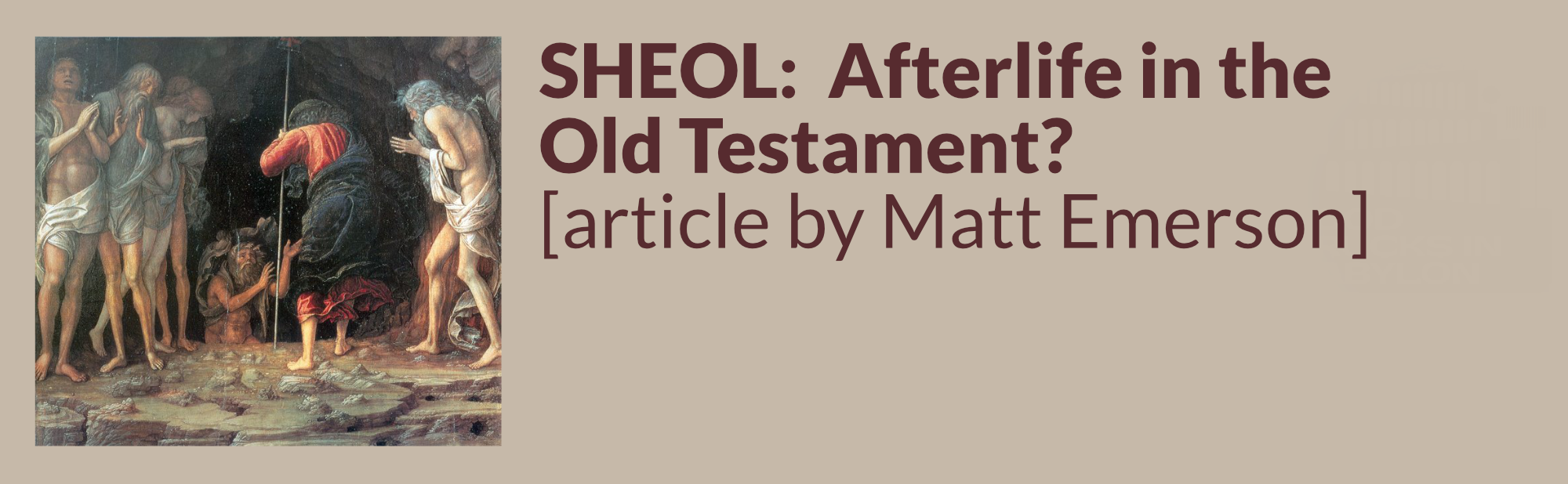 Below are a collection of resources that may be a real help in getting ready for this three part series on Hades, Heaven, and Hell.